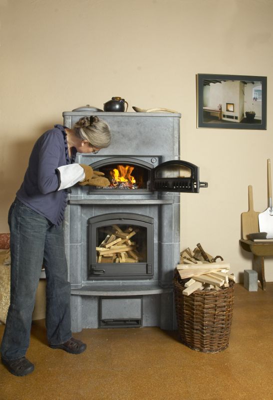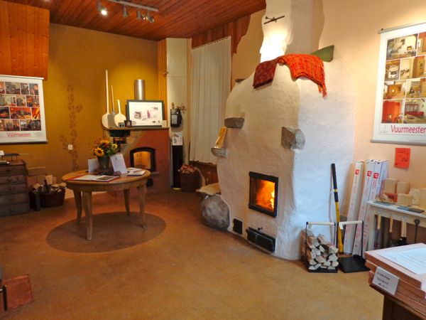In onze toonzaal staat sinds kort een stenen fornuis: het is opgebouwd uit vuurvaste stenen en bakstenen en weegt 850 kg. Tijdens het stoken geeft het direct warmte af via de fornuisplaat. Dat is handig om snel te kunnen koken. Daarnaast wordt de warmte van het houtvuur in de stenen massa van het fornuis opgeslagen. Die warmte wordt in de uren na het stoken aan de woning afgegeven. Het fornuis dient dus niet alleen om op te koken, het is tevens een belangrijke warmtebron.