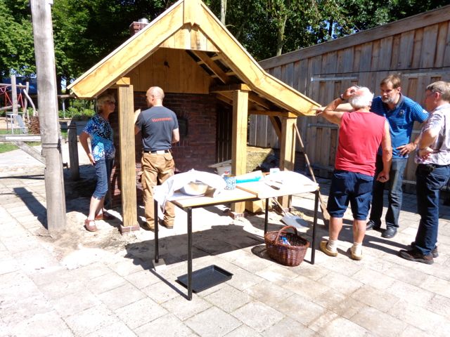 Op zaterdag 12 juli 2014 bakten we voor de eerste keer brood en koeken in de bakoven van de stichting d'Oale Schole in Noordijk. Het binnenwerk van de stenen oven bestaand uit vuurvaste elementen werd door Vuurmeesters geleverd en samen met enthousiaste vrijwilligers opgebouwd. Het resultaat mag er zijn: dit nieuwe bakhuisje heeft het uiterlijk van een vroeger in deze streek veel voorkomend bakhuuske en de smaak van de bakproducten was heerlijk!
