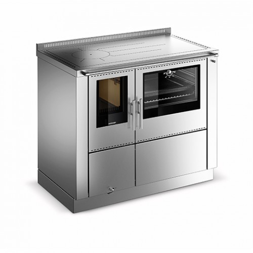 De fornuisdeur in dit nieuwe model heeft een glazen ruit zodat het vuur zichtbaar is; dat is handig in verband met de controle van het vuur. De inzet-bakoven van staal is naast de stookdeur geplaatst en heeft een ook glazen ruit zodat steeds zicht op het bakproduct mogelijk is. Bovenop ligt een keramische fornuisplaat, deze plaat geeft de warmte van het houtvuur snel door en is makkelijk schoon te maken. Het leuke van de plaat is bovendien dat de vlammen van het houtvuur door de plaat heel goed zichtbaar zijn.