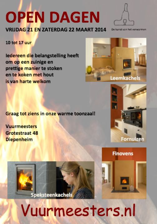 Bij het officiële begin van de lente openen de leden van branchevereniging WARM hun toonzaaldeuren om belangstellenden te informeren over warmte-accumulerende houtkachels. Vuurmeesters nodigt u graag uit voor een vrijblijvend bezoek aan onze toonzaal. In onze stenen bakoven bakken we allerlei lekkers en ook het met hout gestookte fornuis in onze keuken brandt die dag.