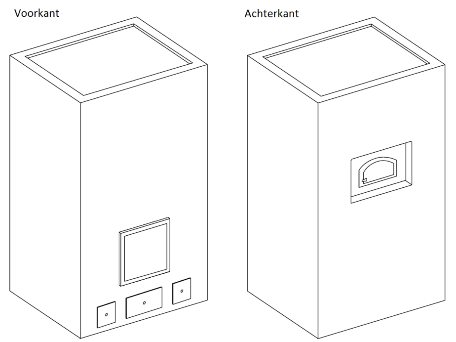 massieve kachelbakoven met bakoven aan de achterkant. Zowel stookdeur