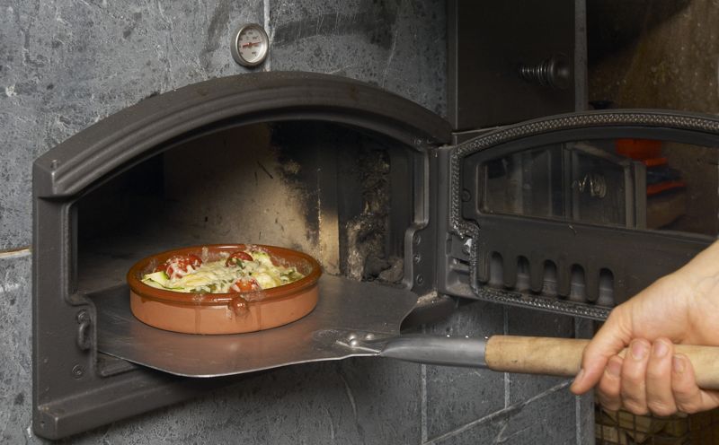 Pizzascheppen, thermometers, degelijke ovenwanten, en speksteenpannen en -platen.
