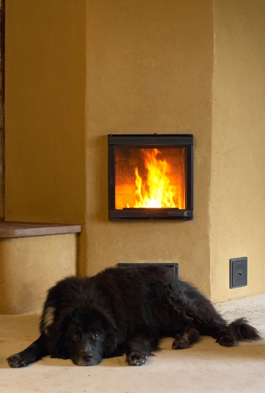 Na het stoken van een mand hout straalt de kachel constant stralingswarmte uit die het huis een hele dag