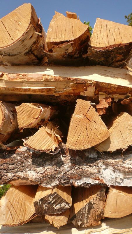 Slechts één mand droog hout is voldoende voor een hele dag warmte.