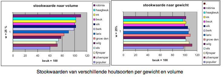 De stookwaarde van hout verschilt per houtsoort, zowel per volume als gewicht.