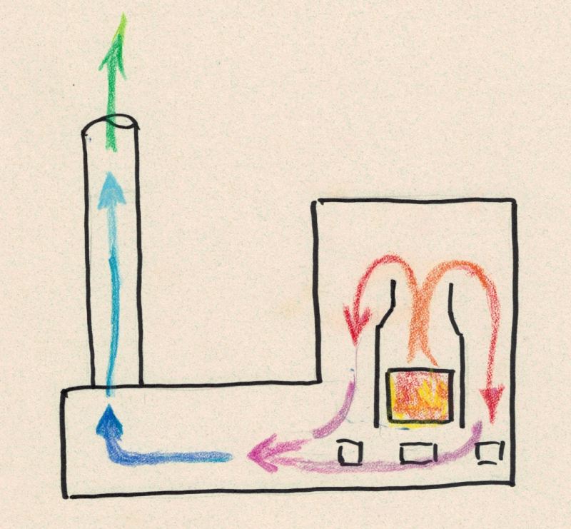 De temperatuur gemeten in de stookruimte is circa 1000 °C, terwijl de rookgastemperatuur gemeten in het schoorsteenkanaal circa 200 °C is.