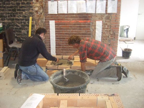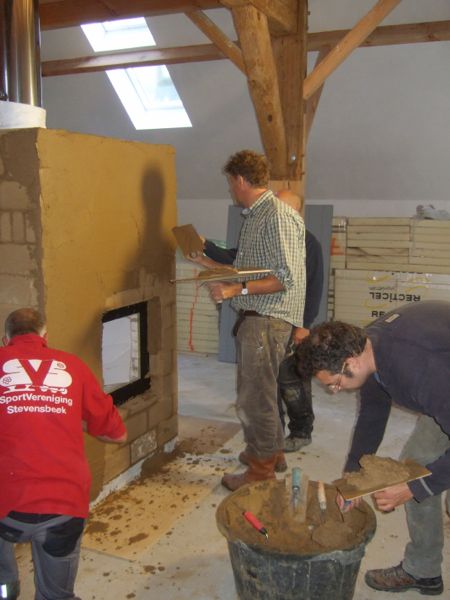 Tijdens de workshop waren er continu twee ervaren kachelbouwers van Vuurmeesters aanwezig om de cursisten te begeleiden. De cursisten konden op al hun vragen dan ook meteen antwoord krijgen. De opbouw tijdens deze workshop verliep bijzonder voorspoedig en vrijdagmiddag waren beide finoves zover klaar dat de eerste kleine vuurtjes gestookt konden worden. Graag willen we alle deelnemers en Mariska en Henri bedanken voor dit geslaagde warmteproject.