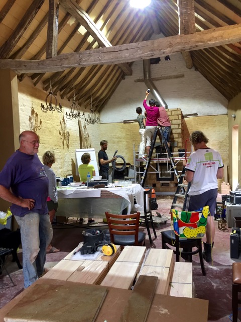 Het is altijd weer geweldig om te ervaren hoe een groep mensen die nog niet eerder een kachel bouwde dat met goede instructies voor elkaar krijgt.