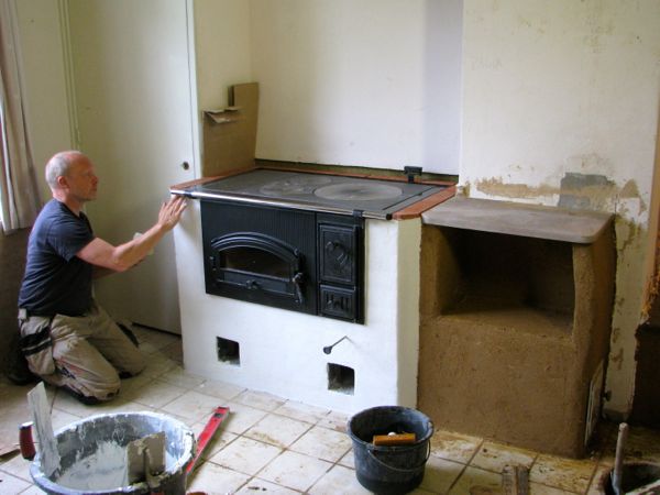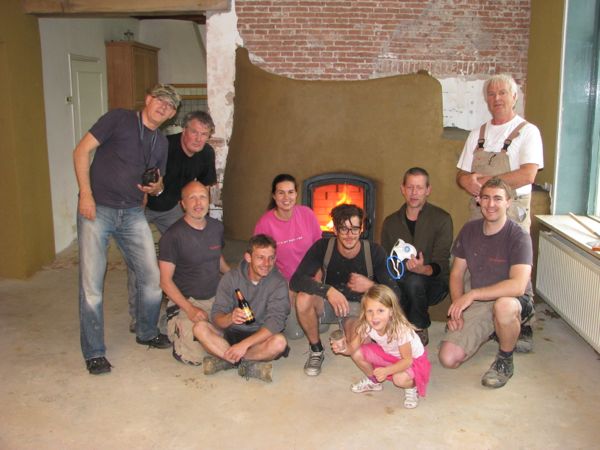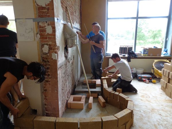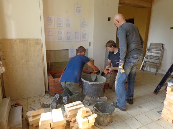 Zes deelnemers uit België, Nederland, Hongarije en Frankrijk metselden onder voortdurende begeleiding van Roland en Joppe niet alleen deze kachel in de woonkamer op, maar ook een stenen fornuis in de keuken. Dit fornuis met de afmetingen 124 cm br x 74 cm diep x 92 cm hoog heeft een stenen bakoven en weegt 1300 kilogram.