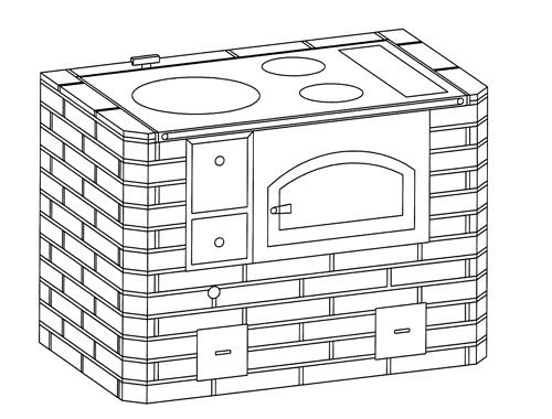 We bouwden een met hout gestookt fornuis met een schoorsteenaansluiting aan de zijkant van het fornuis. Dit fornuis, model Hemmo, heeft een ingebouwde bakoven. In deze bakoven kan men ook hout stoken, dit om een hoge oventemperatuur te bereiken. Om lagere oventemperaturen te krijgen volstaat het om alleen de stookruimte van het fornuis zelf te gebruiken.