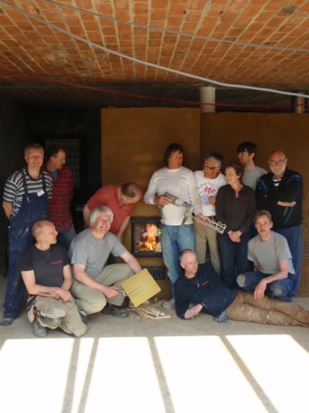 In de week van 4 t/m 8 april 2011 hebben we in Silvolde een kachelbouwworkshop gegeven. Er waren acht zeer gemotiveerde cursisten met wie we samen in deze intensieve week twee mooie kachelprojecten vanaf de kale werkvloer opbouwden. Deelnemers kwamen uit Nederland en België. De twee finovens werden opgebouwd uit pakketten voorgezaagde en genummerde stenen. Samen met een duidelijke bouwtekening is iedere cursist na afloop van de workshop in staat een dergelijk pakket thuis op te bouwen.