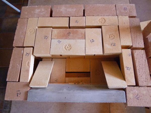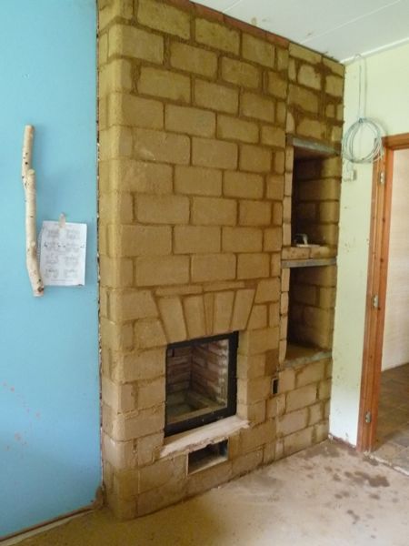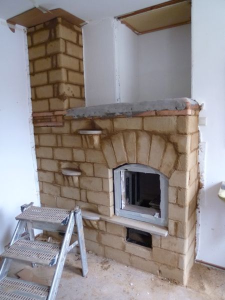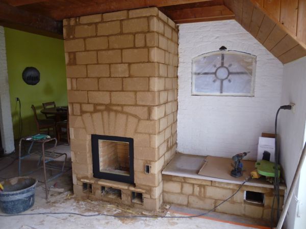 Finoven model Lauri uitgebreid met twee opslagvakken voor hout, werd steen voor steen opgemetseld in het kantoor.